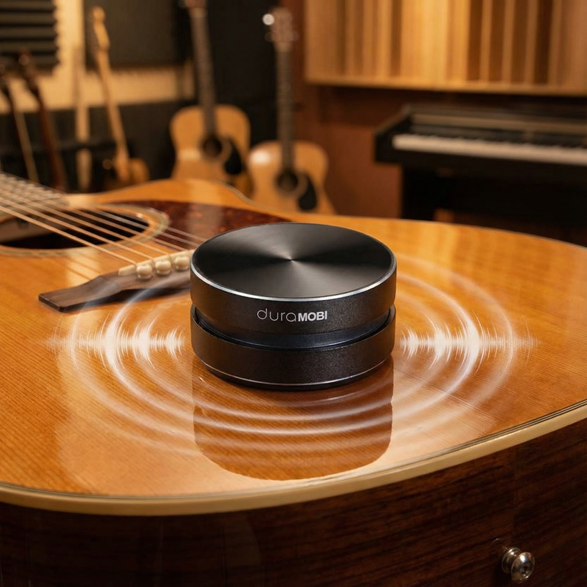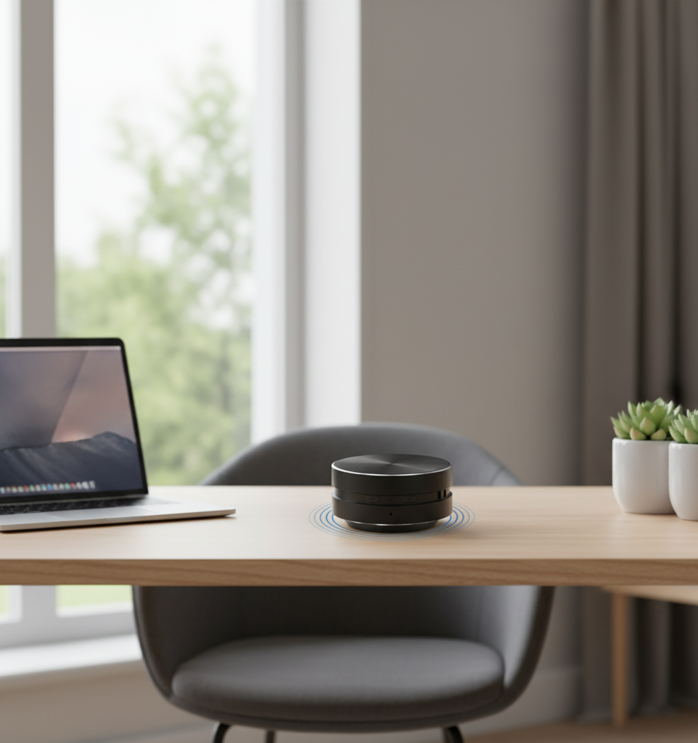 Place it on wood, glass, metal, or any solid surface and let bone conduction technology transform vibrations into immersive 360° sound.